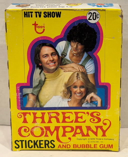 Description: Three's Company Vintage Sticker Card Box Contents: 36 factory sealed packs, 5 stickers and 1 stick of gum per pack. Manufac...