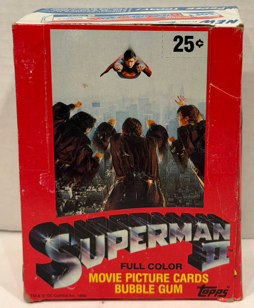 Description: Superman II Movie Vintage Card Box Contents: 36 factory sealed packs, 10 cards, 1 sticker and 1 stick of gum per pack. Manufactur...
