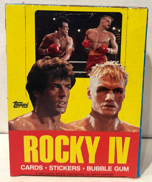 Description: Rocky IV 36 pack Vintage Trading Card Box Contents: 36 factory sealed packs. 9 cards and 1 sticker per pack. Manufacturer: Topps,...