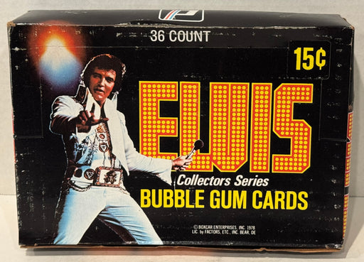 Description: Elvis Bubble Gum Cards Boxcar Enterprises Vintage Card Box Contents: 36 sealed packs with cards and 1 stick of bubble gum. Manuf...