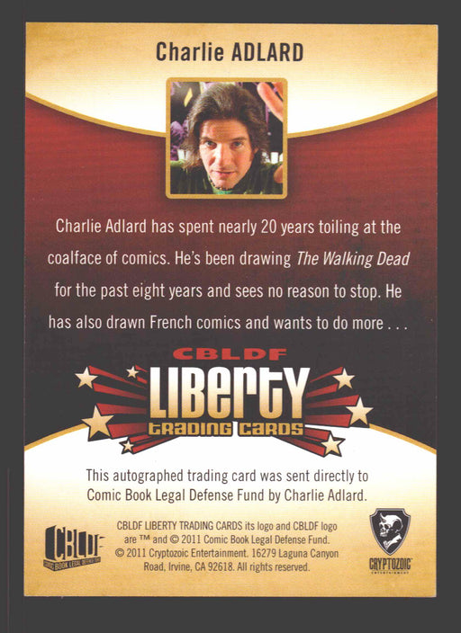 Description: 2011 CBLDF (Comic Book Legal Defense Fund) Liberty Autograph Card Contents: Authentic autograph card signed by Charlie Adlard Manuf...