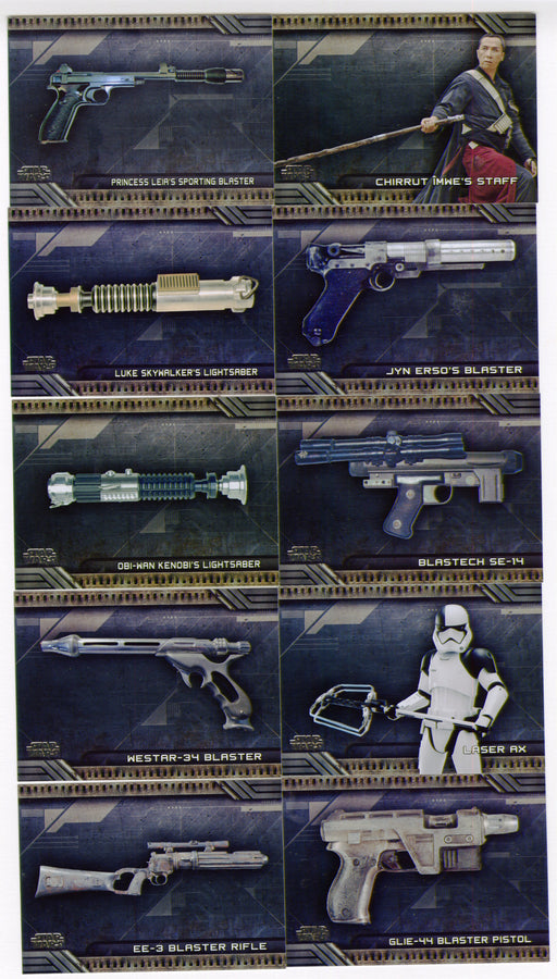 Description: 2018 Star Wars Galactic Files Chase Card Set Contents: (10) weapons chase cards, W-1 through W-10 Manufacturer: Topps, 2018. Con...