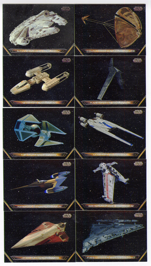 Description: 2018 Star Wars Galactic Files Chase Card Set Contents: (10) vehicles chase cards, V-1 through V-10 Manufacturer: Topps, 2018. Co...