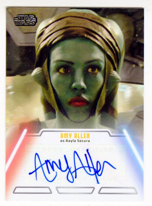 Description: Star Wars Jedi Legacy Autograph Card Contents: Authentic autograph card featuring Amy Allen as Aayla Secura. Manufacturer: Topps, 2...