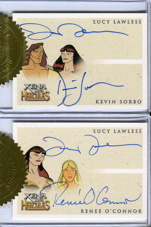 Description: Xena & Hercules The Animated Adventures Double Autograph Card Set Contents: 2 authentic Multi-case Dealer Incentive double autog...