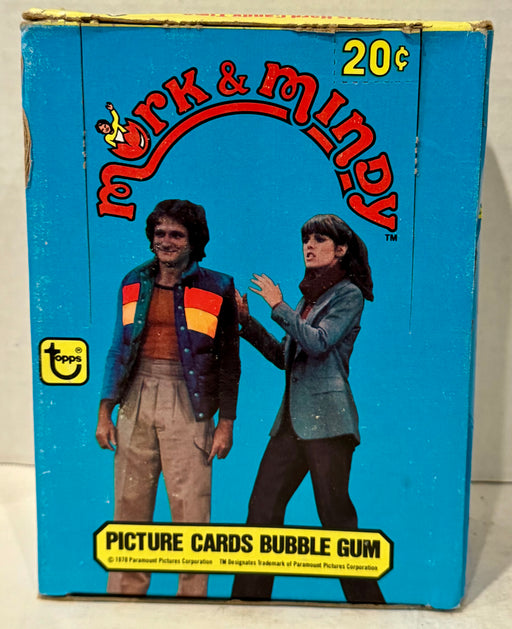 Description: Mork & Mindy TV Show Vintage Bubble Gum Card Box Contents: 36 factory sealed packs, 10 cards, 1 sticker and 1 stick of gum per ...