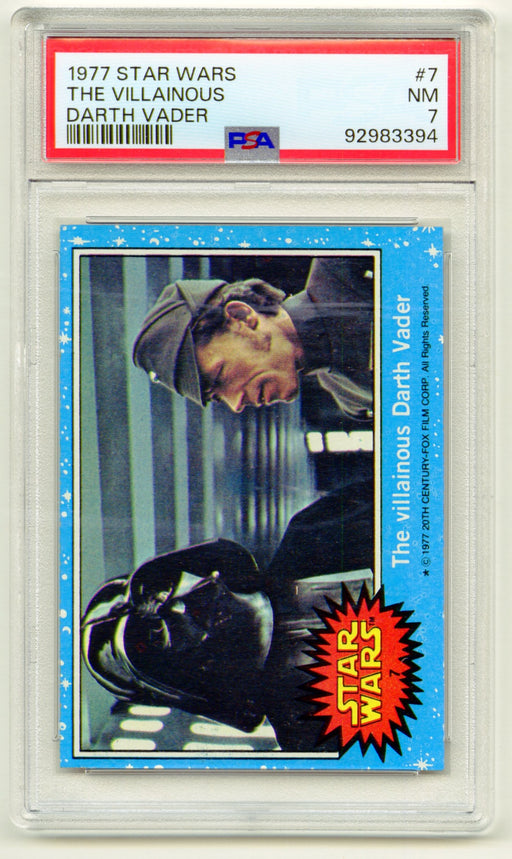 Description: 1977 Star Wars The Villainous Darth Vader #7 Trading Card PSA 7 NM Graded: PSA 7 Certification: 92983394 Manufacturer: Topps, 1977. ...