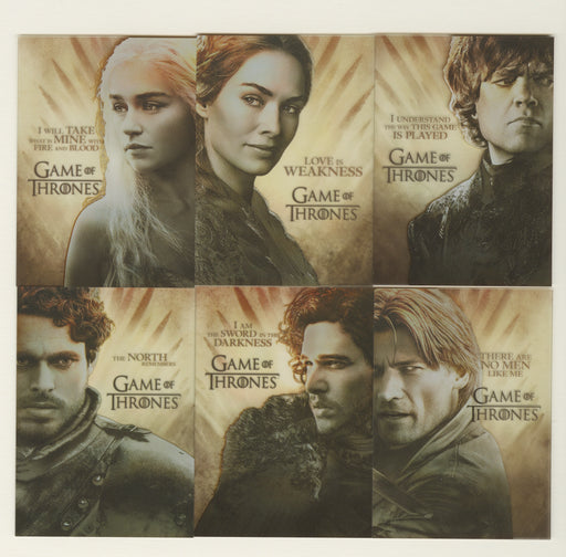 Description: Game of Thrones Season 2 Plastic Gallery Cel Chase Card Set 6 Cards PL1 - PL6 Contents: 6 chase cards, PL1 through PL6...