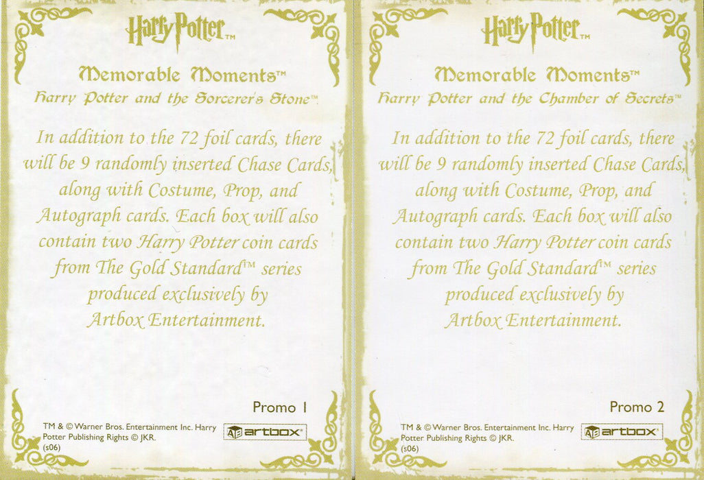 Harry Potter Memorable Moments Gold Foil Promo Card Lot Promo 1 and Promo 2